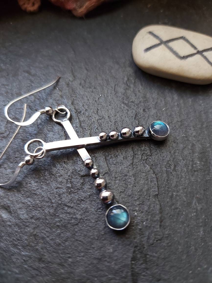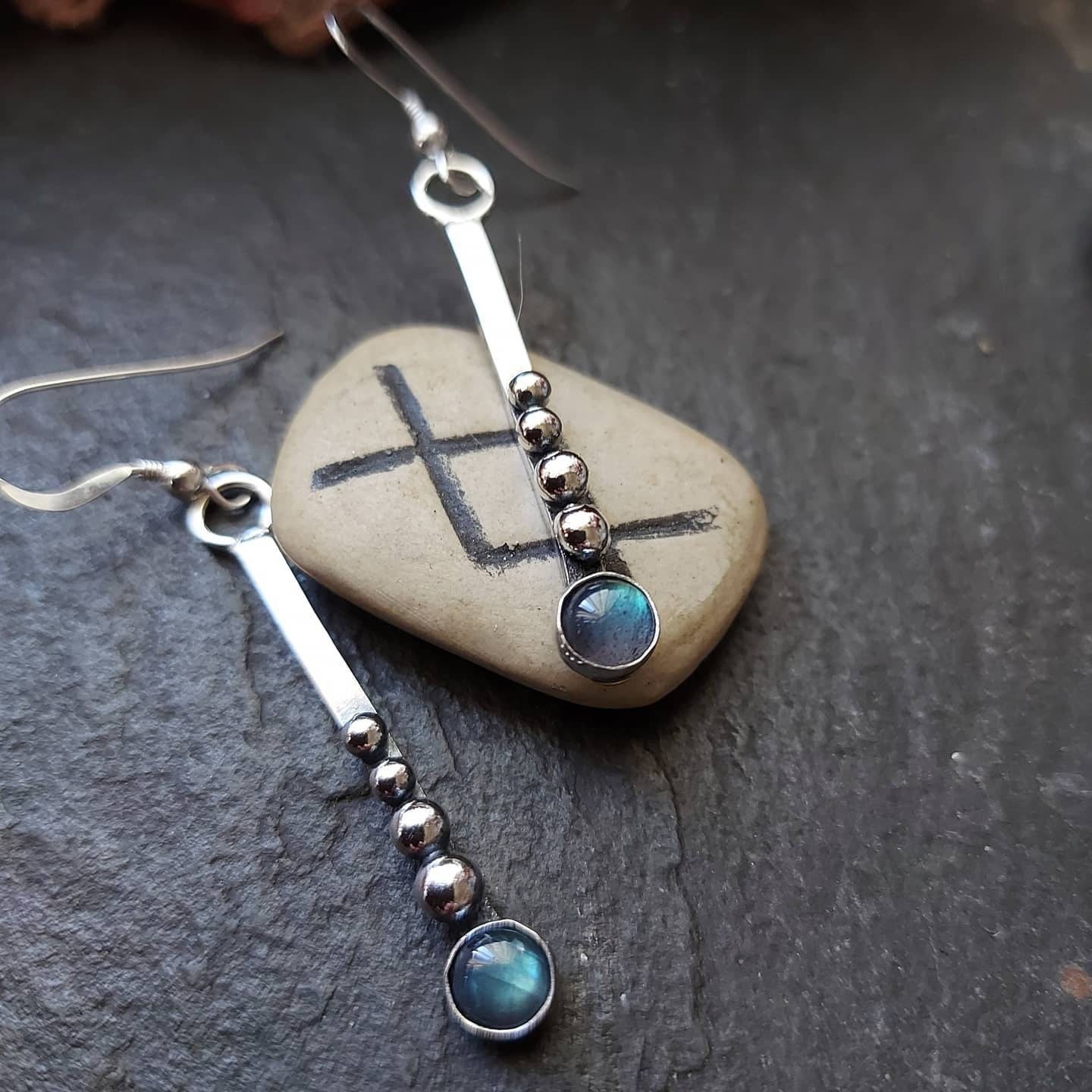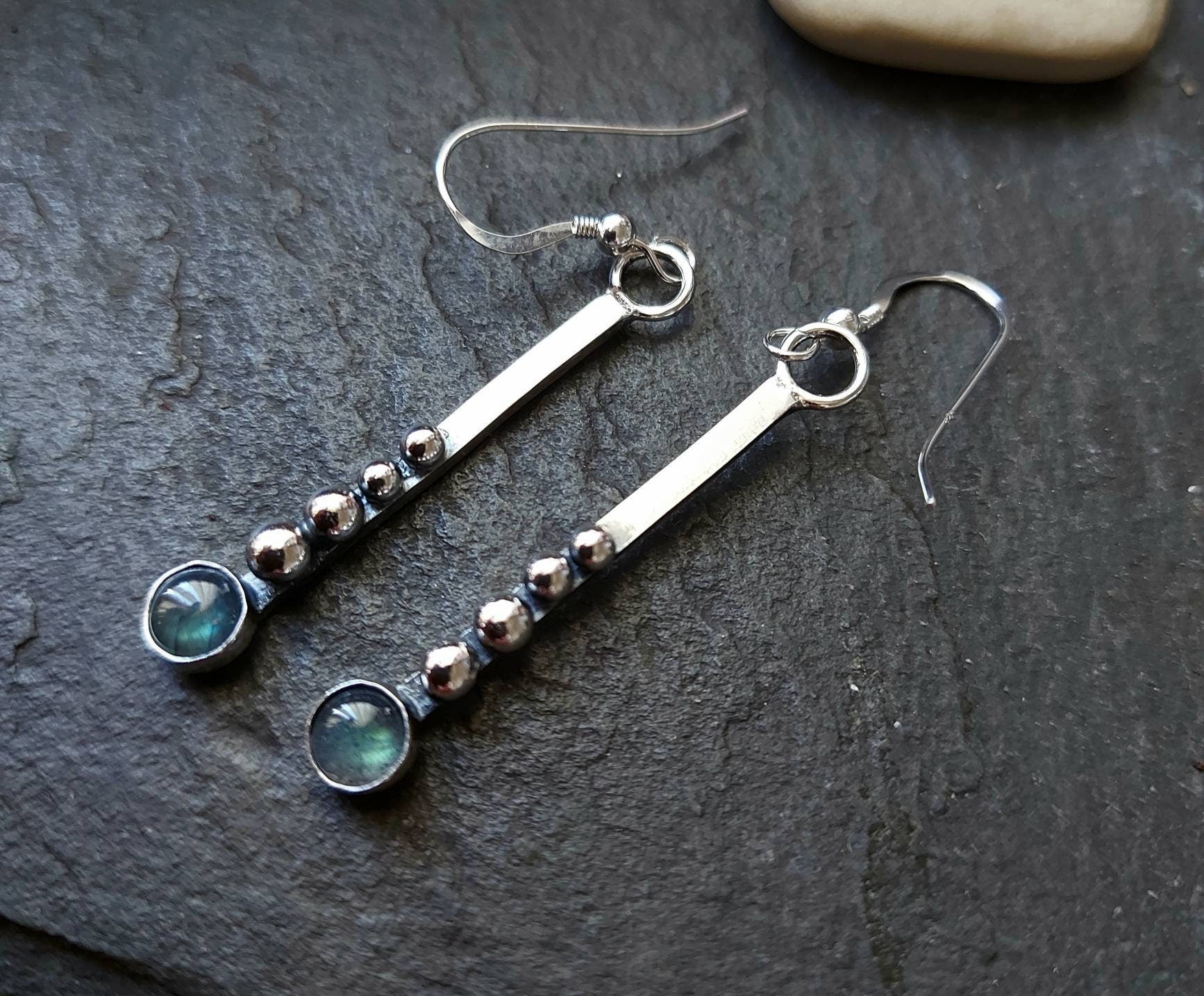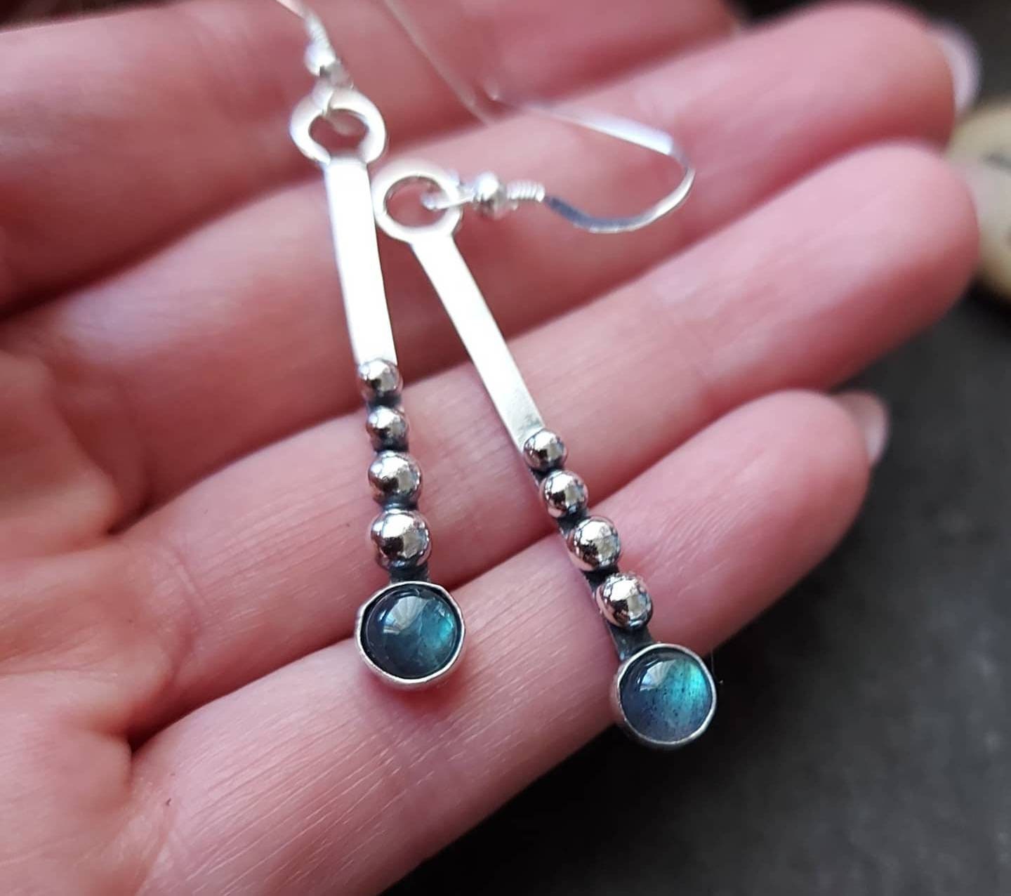 Silver labradorite earrings with silver balls and glowing 6mm labradorite cabochons