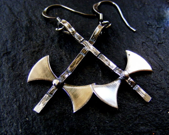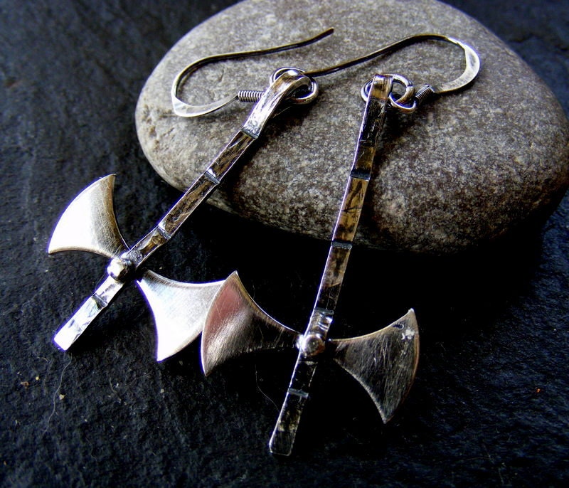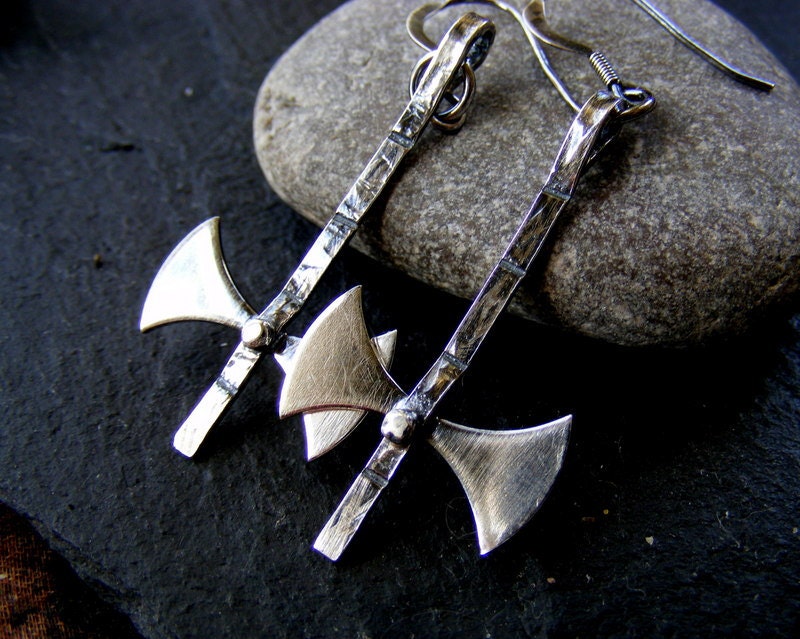 Silver Axe Dangle Earrings , Silver warrior mini hatchet drop earrings