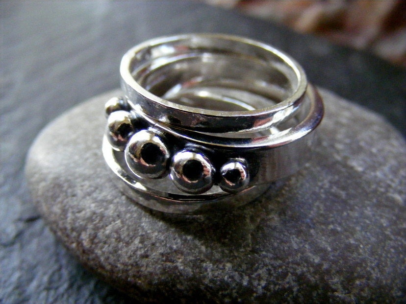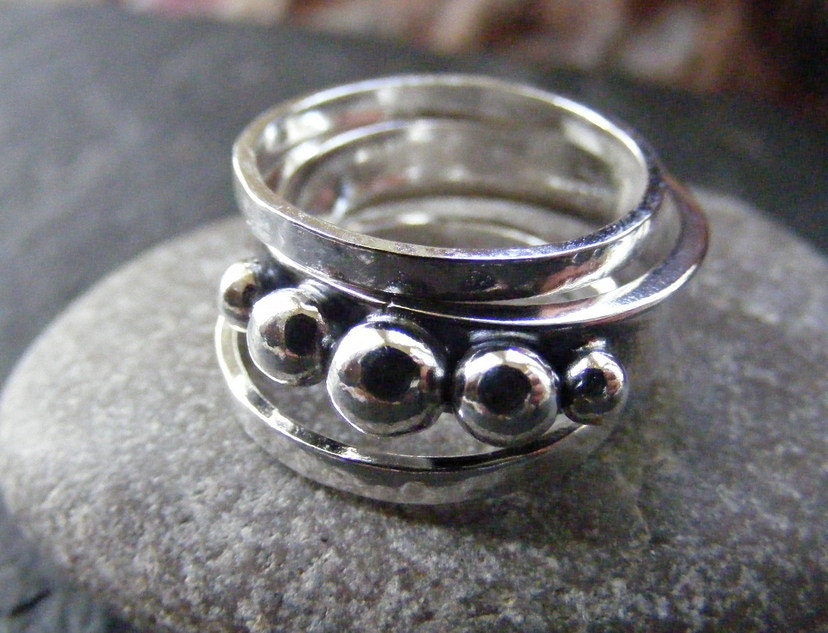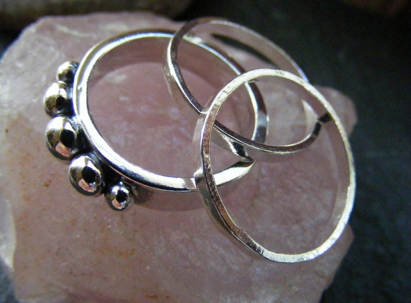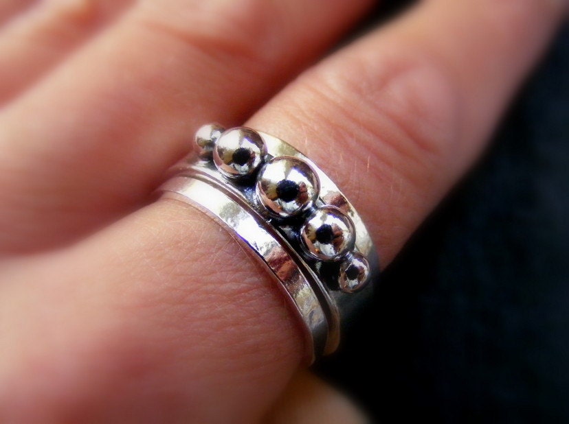 Silver Balls stacking ring set , three stacking rings set
