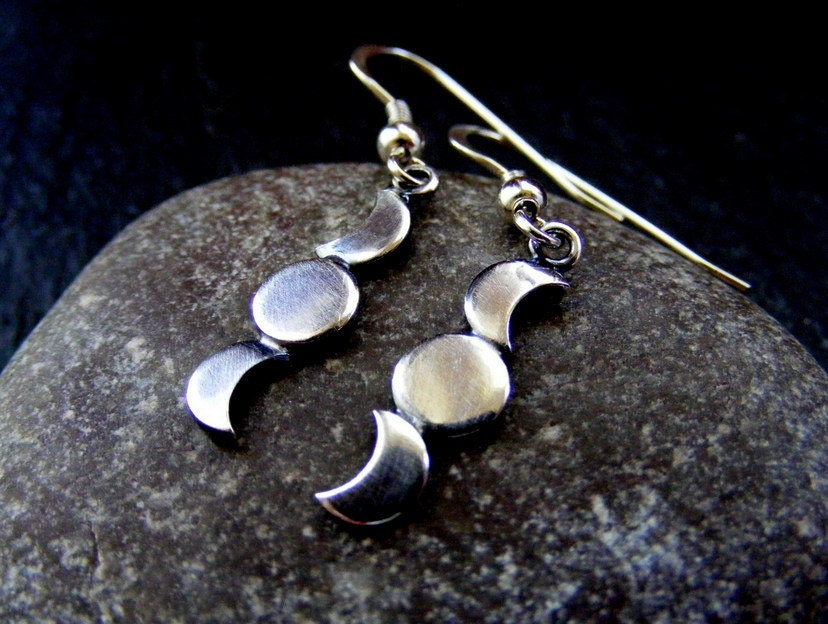 Silver Crescent Moon Triple moon dangle earrings , moon drop earrings